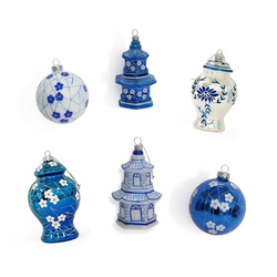 Ornements de Noël en gros Festif Luxe Impression Verre Chinois Bleu et Blanc Pagode Fleurs Décorations